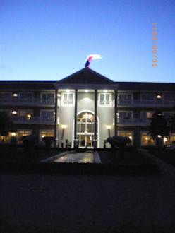Haupteingang bei Dämmerung