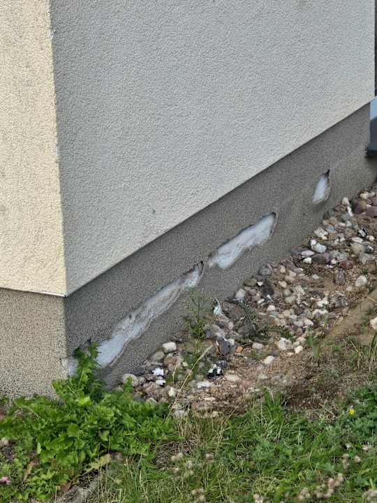 AußenansichtFassade vom Ferienhaus dreckig und bröckelig. Die Regenrinnen waren teilweise auch defekt.