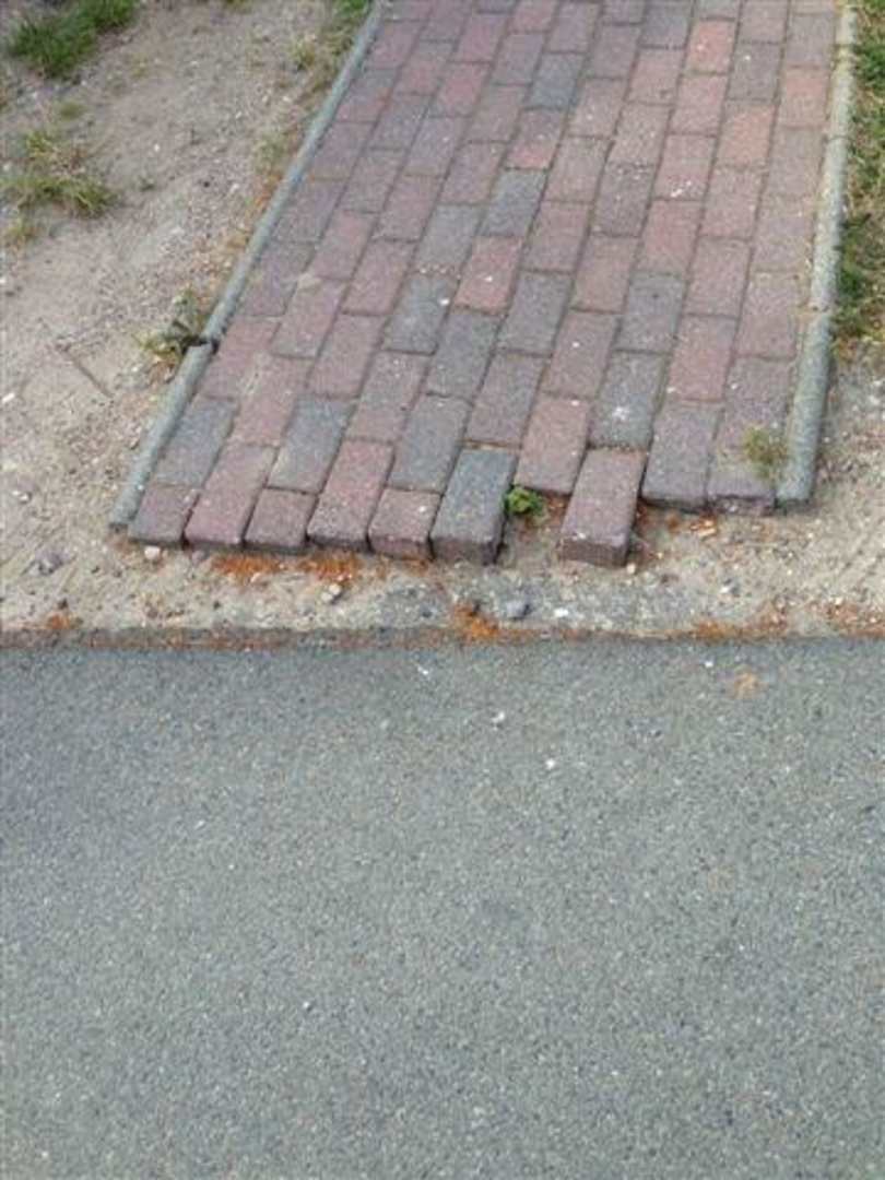 Gehweg in der Ferienanlage. Stolperfalle
