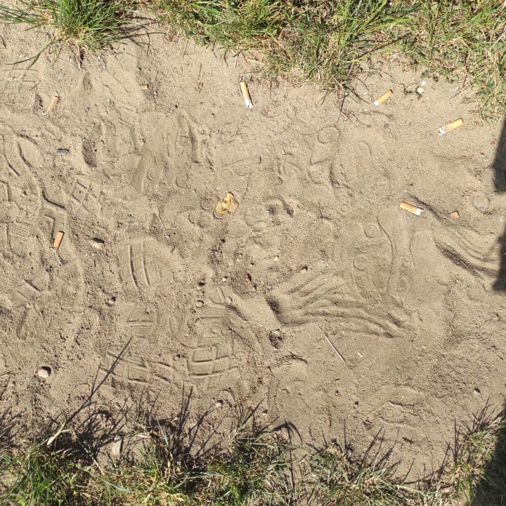 Auf dem gesamten Gelände Kippen über Kippen. Selbst der Abenteuerspielplatz ist betroffen und die Mitarbeiter kehren es ganz liebevoll und die Bänke oder ins umliegende Gestrüpp 👍
