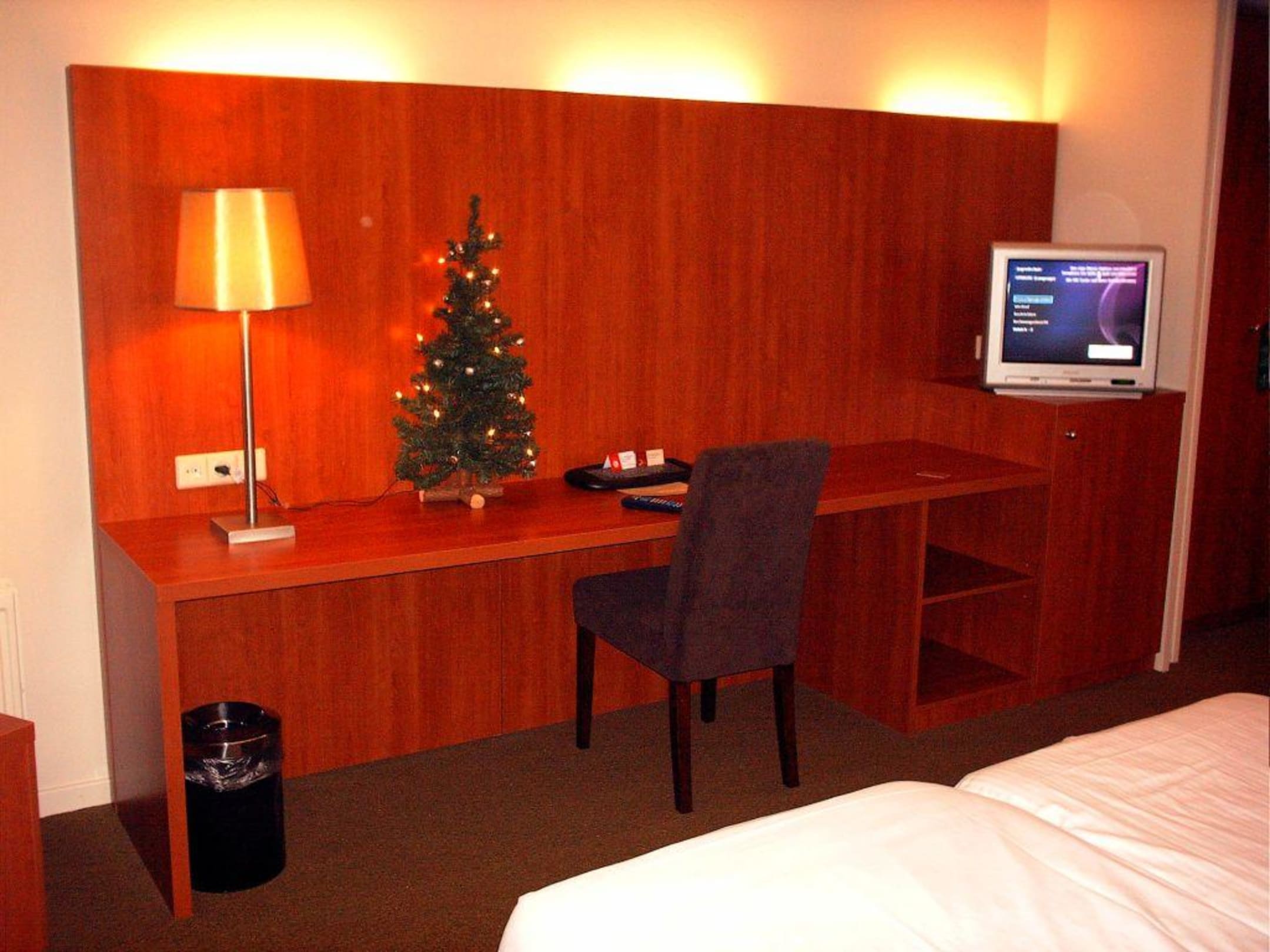 Schreibtisch mit kleinem Christbaum
