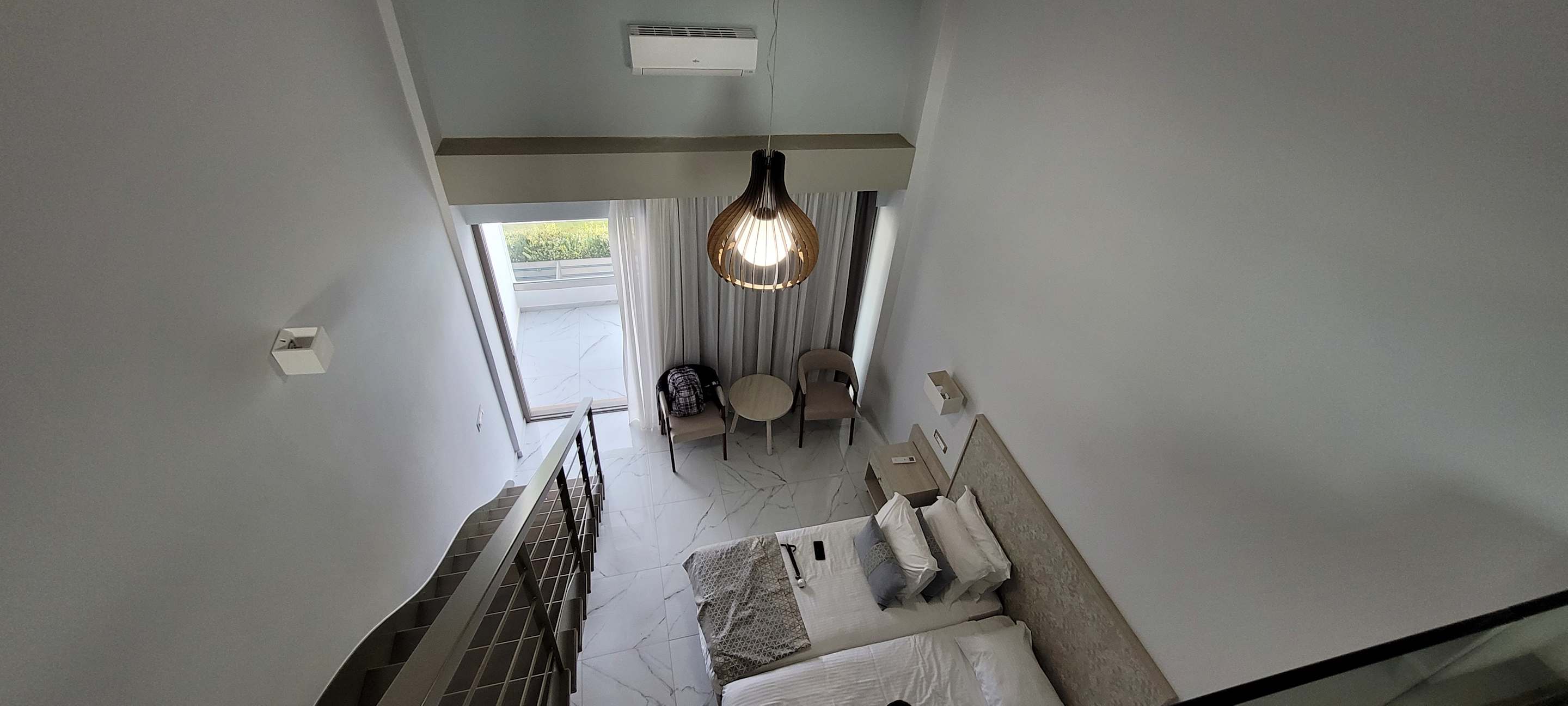 Blick auf untere Etage des Maisonette-Zimmers.