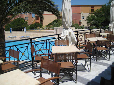 Blick vom Barbereich auf den Pool