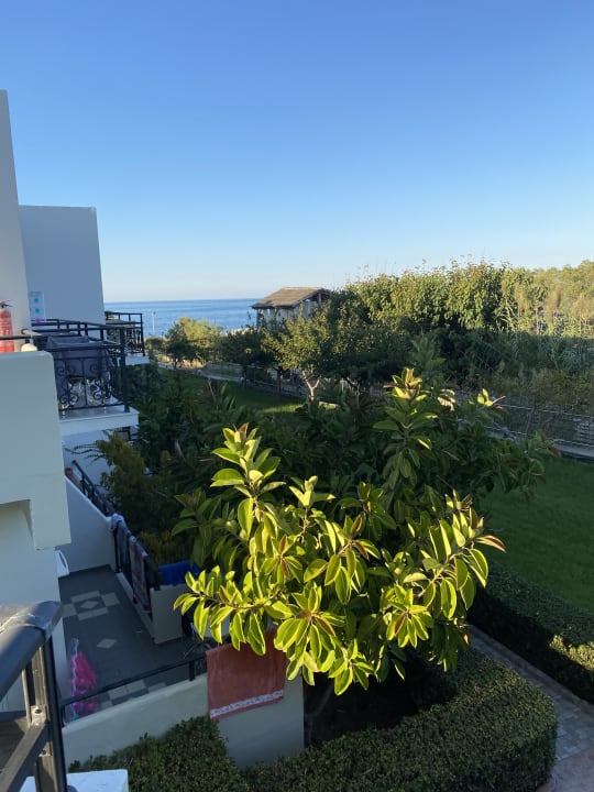 Teil der Anlage außen mit Meerblick und Nachbarhotel.
