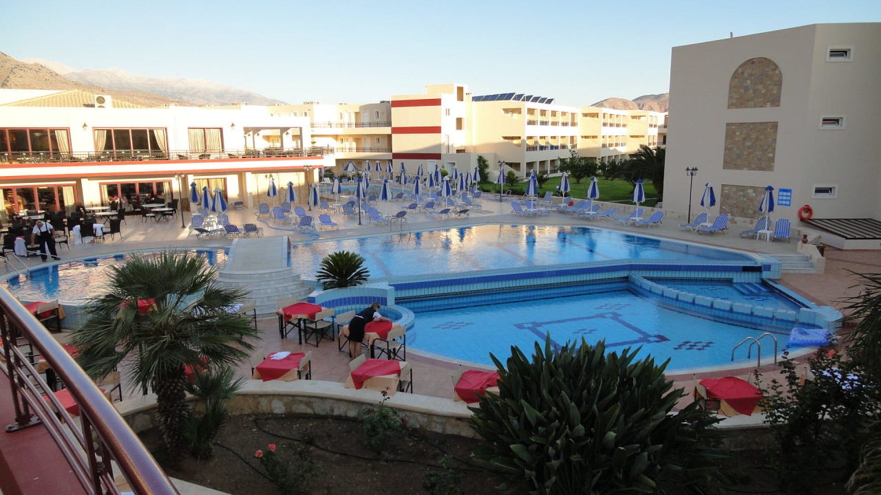 Ausblick zum Neubau über den Pool