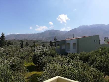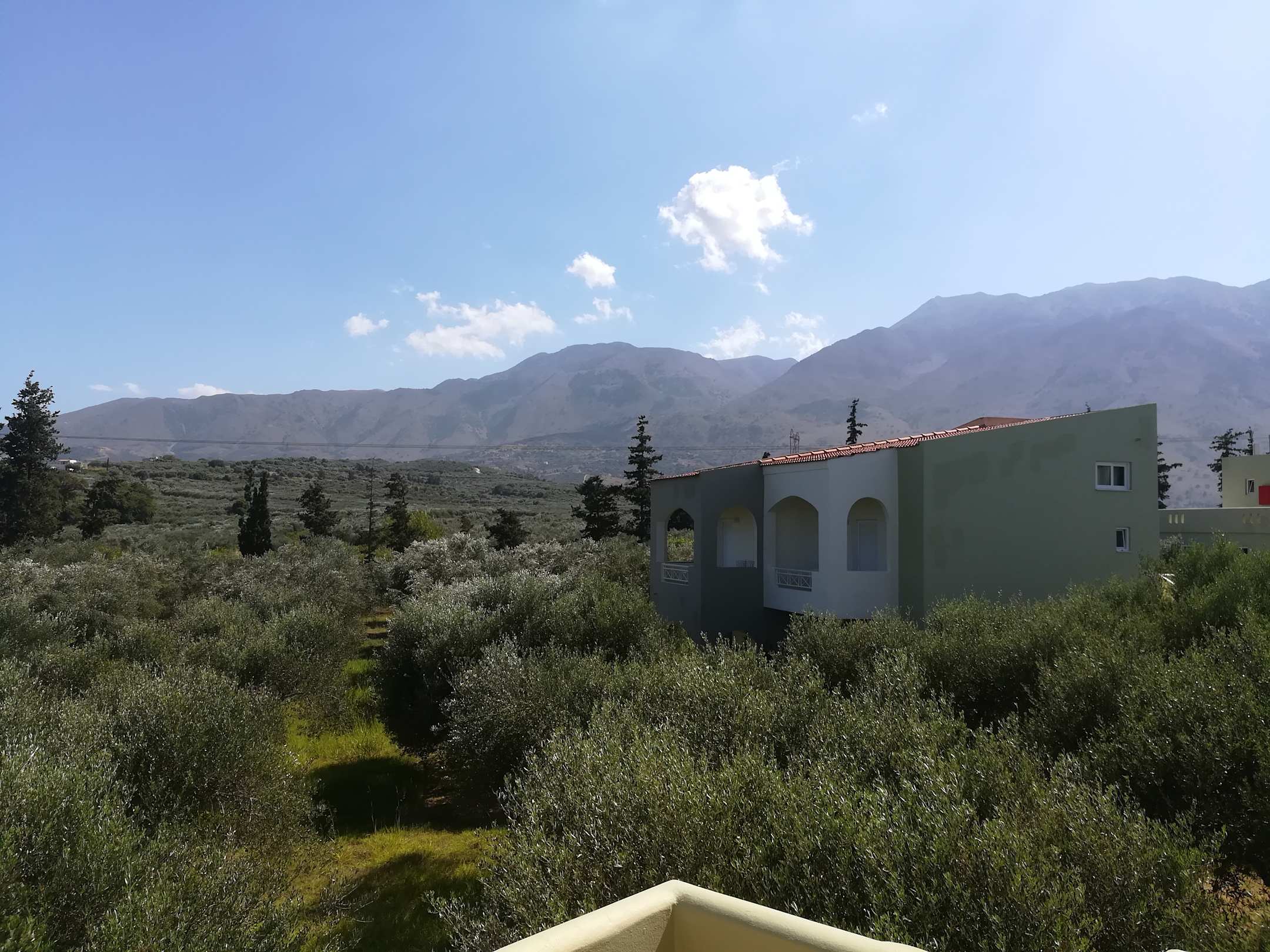 Eingangsbereich von unseren Zimmer, hier Blick in die Olivengärten und Berge