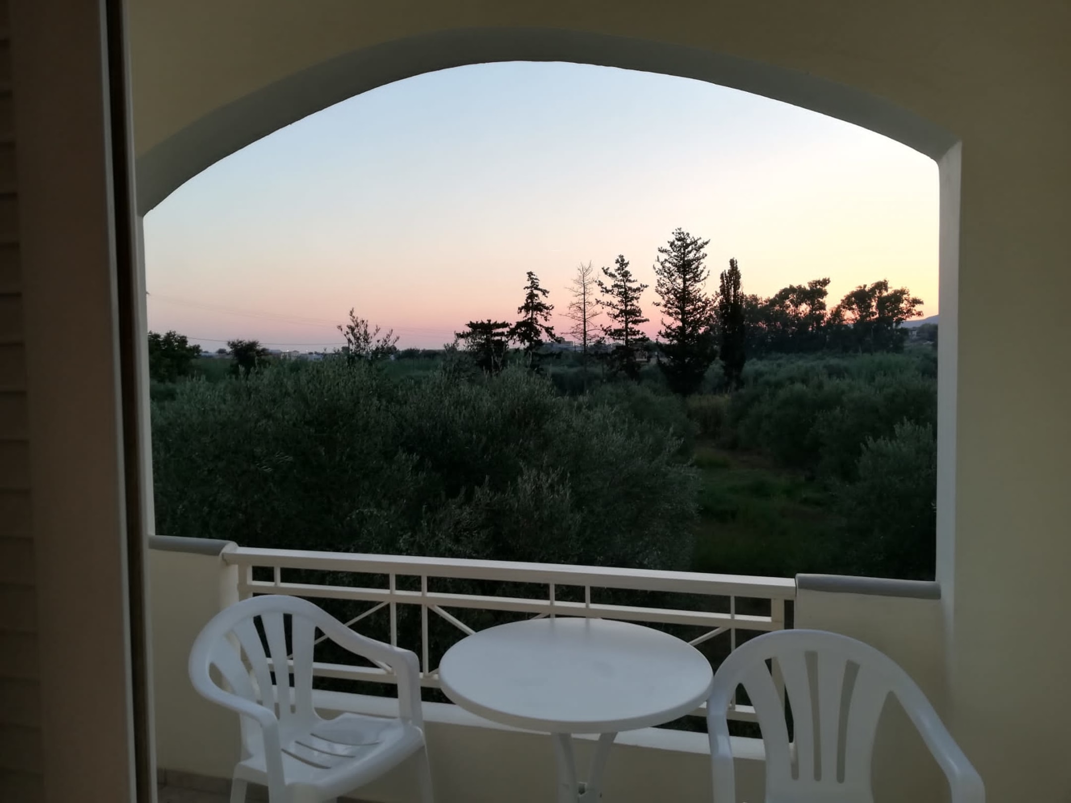 Ausblick vom Balkon auf die Olivenbäume