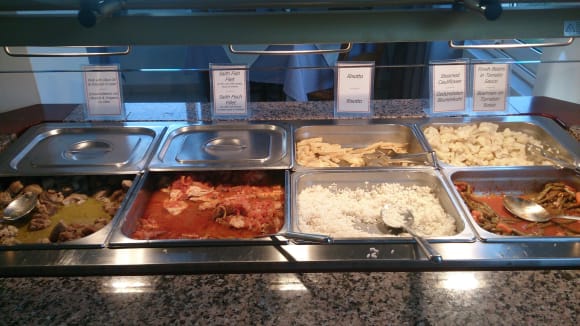 Abendessen - geschmacklich okoft gab es nur eine Beilage, entweder nur Reis oder nur Kartoffeln. Nudeln gab es in 14 Tagen 2 mal. Eine Sorte Fleisch, eine Sorte Fisch. Die Auswahl ist sehr mangelhaft. (wenn man wie wir Buffet und nicht Menu gebucht hat)