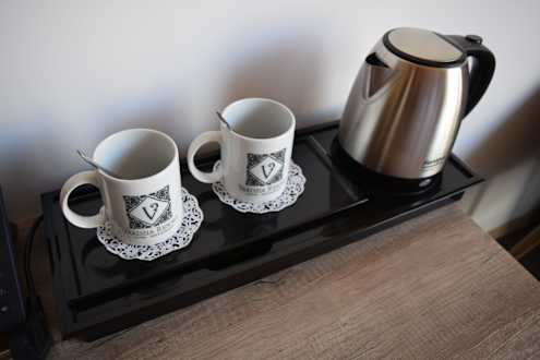 Wasserkocher und Tassen im Zimmer