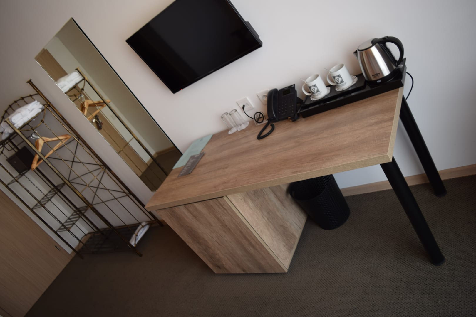 Schreibtisch und Garderobe