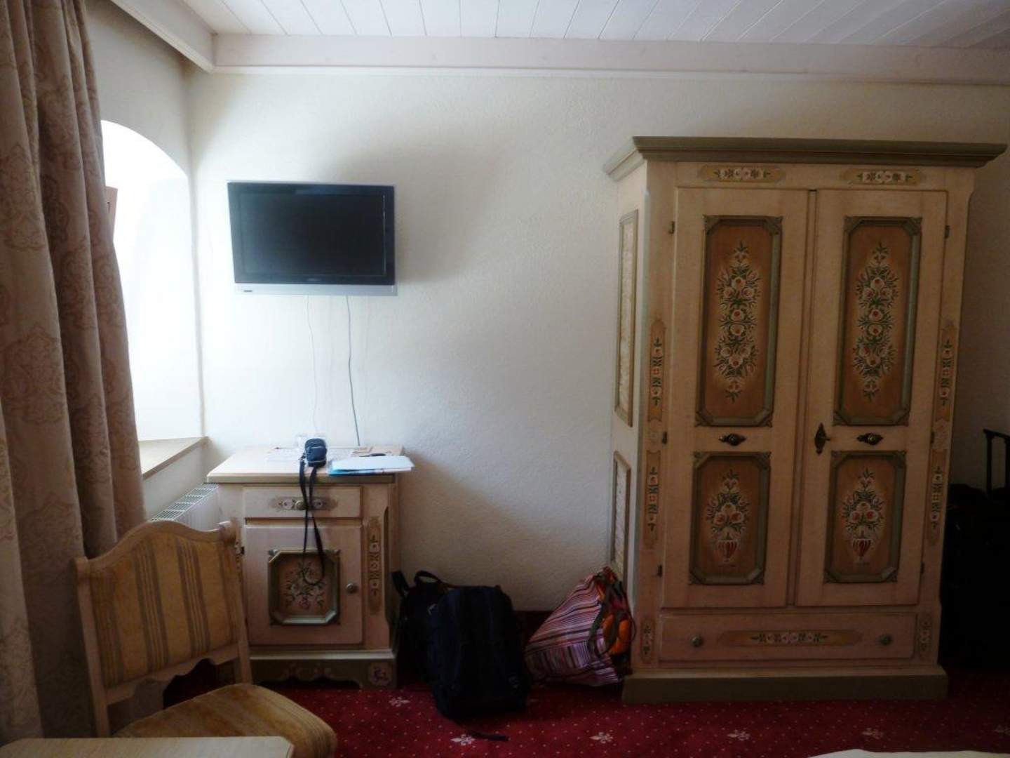 Doppelzimmer 102 mit Schrank und TV.