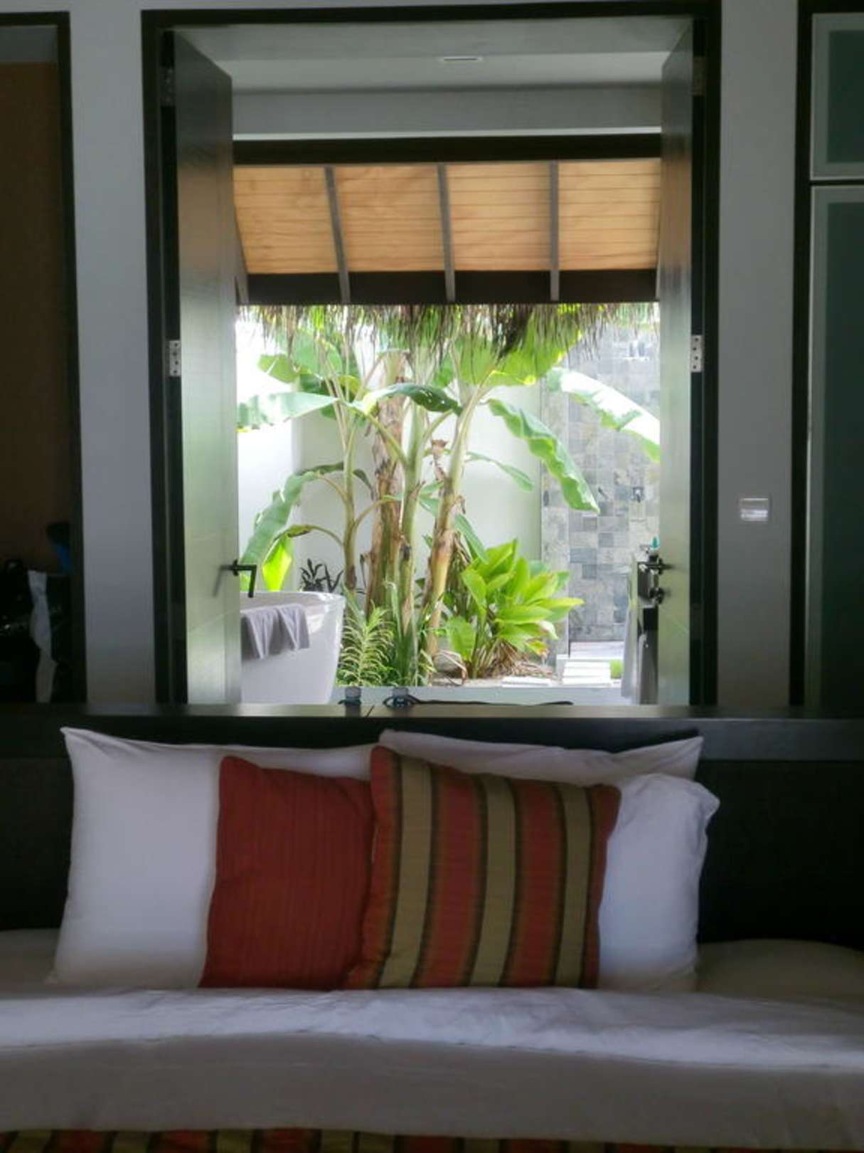Beach-Villa Blick von Schlaf-Wohnbereich auf Bad