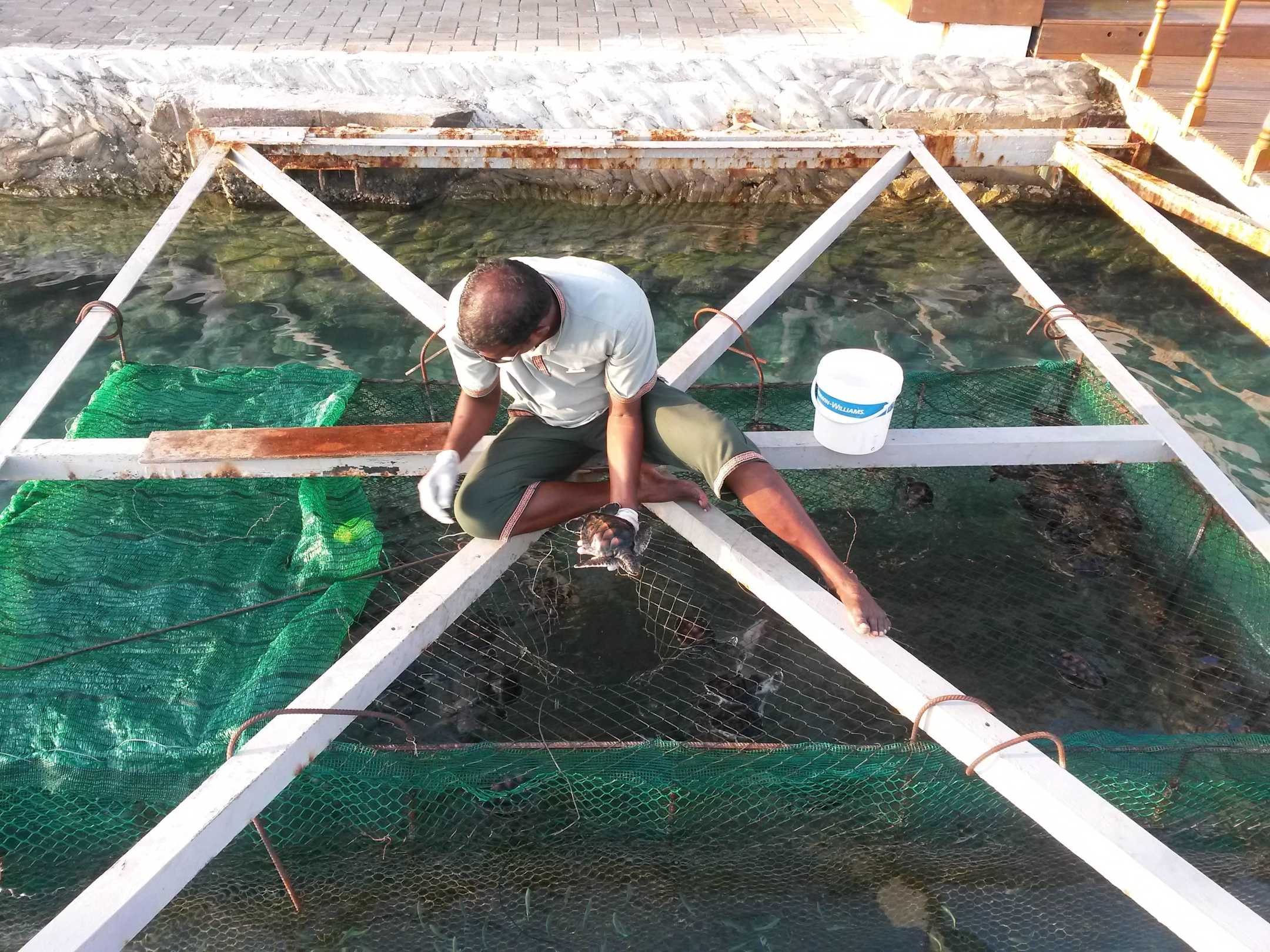 Füttern und pflegen der Schildkrötenkinder.