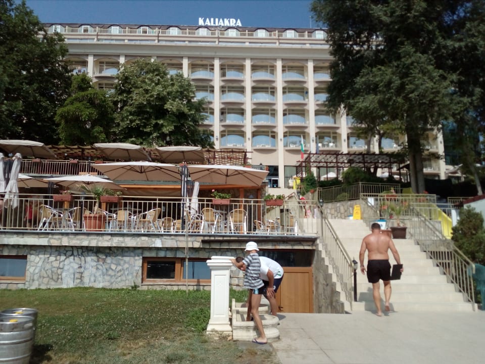 AußenansichtAnsicht von der Strandpromenade zur Hotellobby (viele Stiegen!) mit diversen Terrassen.