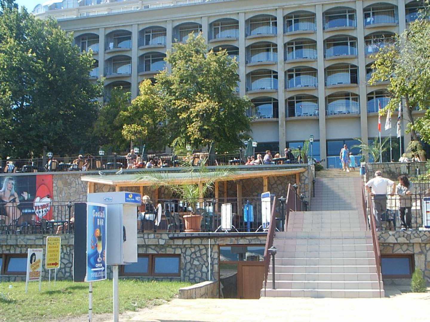 Eingang zum HotelVon der Optik ein halbwegs normales Hotel. Sauber und das Pool inkl. Bar war auch in Ordnung. Das Wetter hat uns sehr entschädigt. Das Essen war jedes Mal lauwarm bis kalt, die Suppe war dagegen sehr heiß. Das es bei all inklusive die Getränke an der Poolbar zu zahlen sind habe ich nicht verstanden