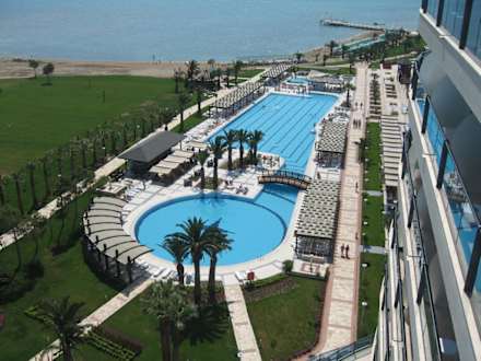 Blick aus unserem Zimmer (10. Etage) auf den Pool