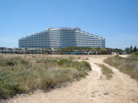 Blick vom einheimischen Strand zum Hotel
