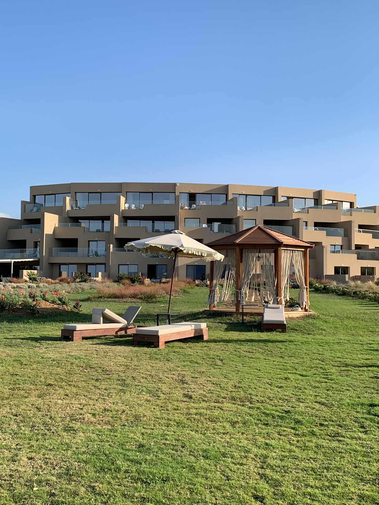 Blick vom Strand auf das Hotel