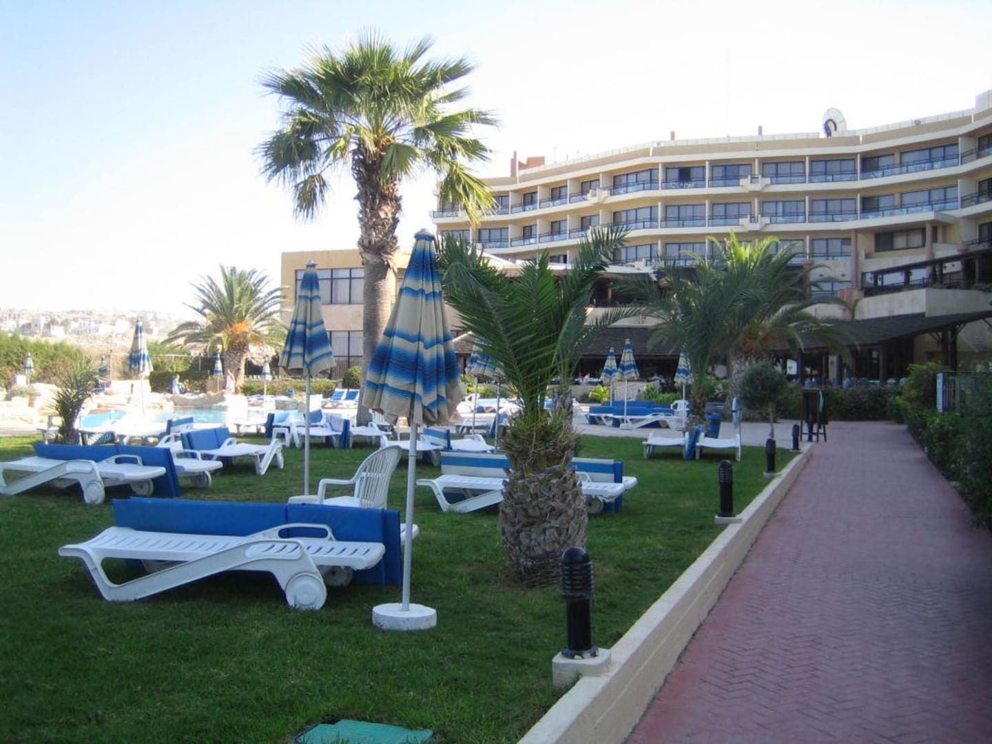 Blick auf das Hotel vom Pool aus.