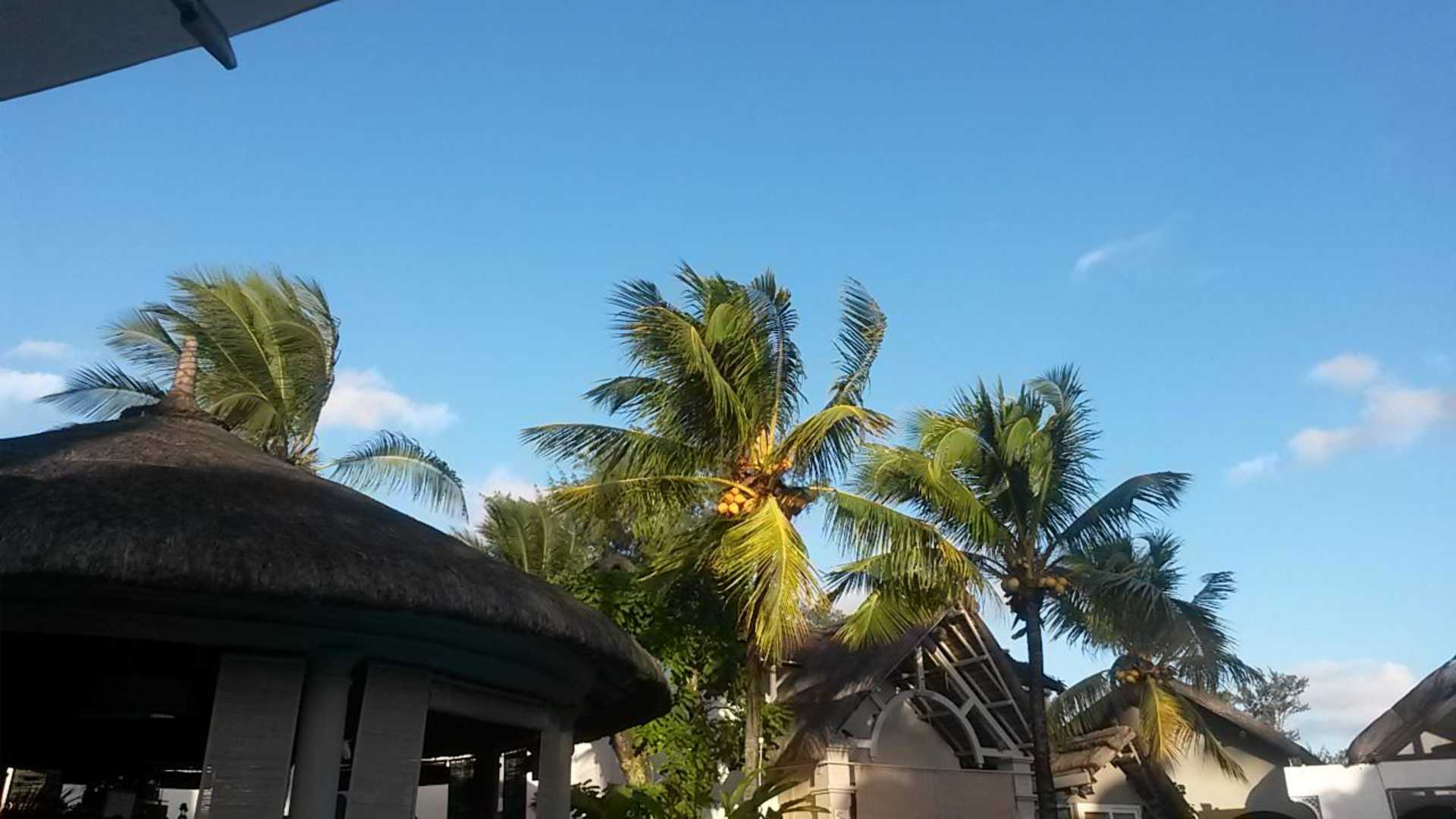 Blauer Himmel und Palmen