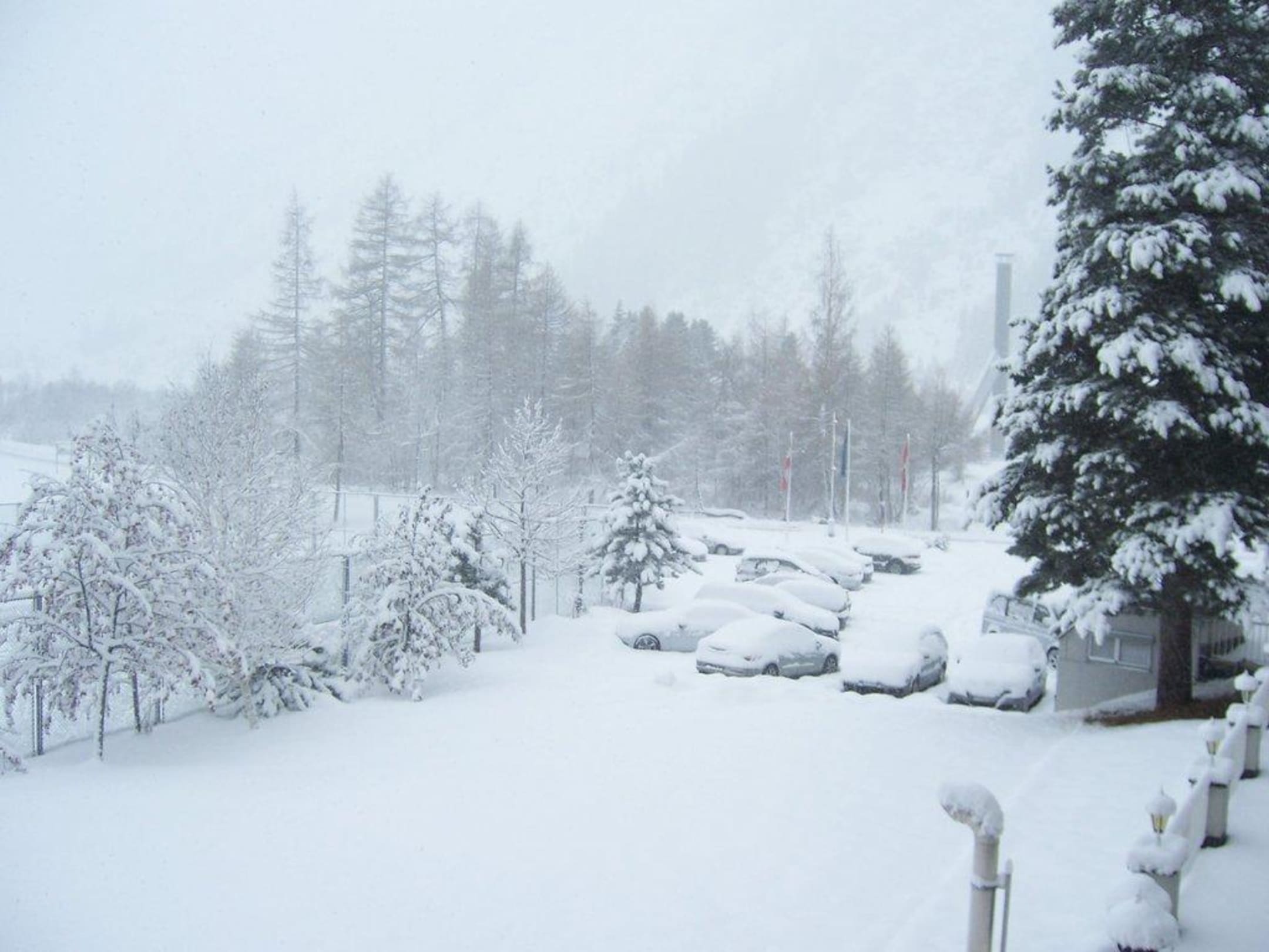 Schneefall in der NachtSo sah es am Morgen, nach einer Schneefallnacht vor dem Hotel am Parkplatz aus---herrlich schön !!!!!!!