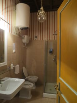 geräumiges Badezimmer mit Handwaschbecken, Dusche und Bidet