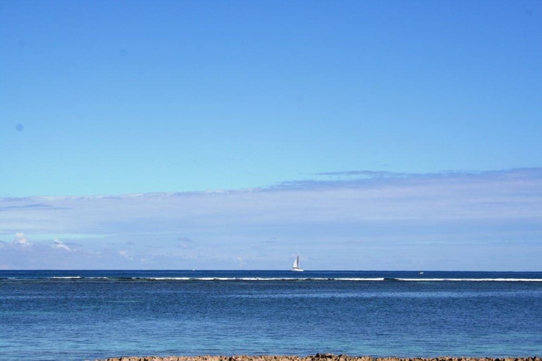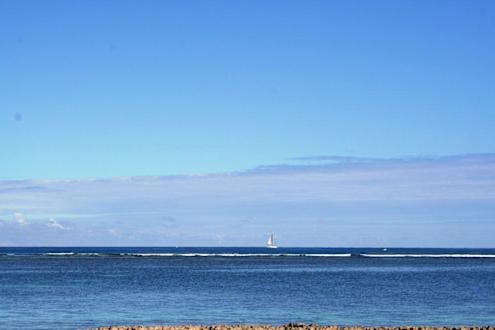 Blick vom Hotelstrand aufs Meer