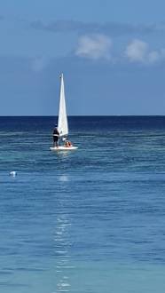 Windsurfen, aber da gerade wenig Wind.