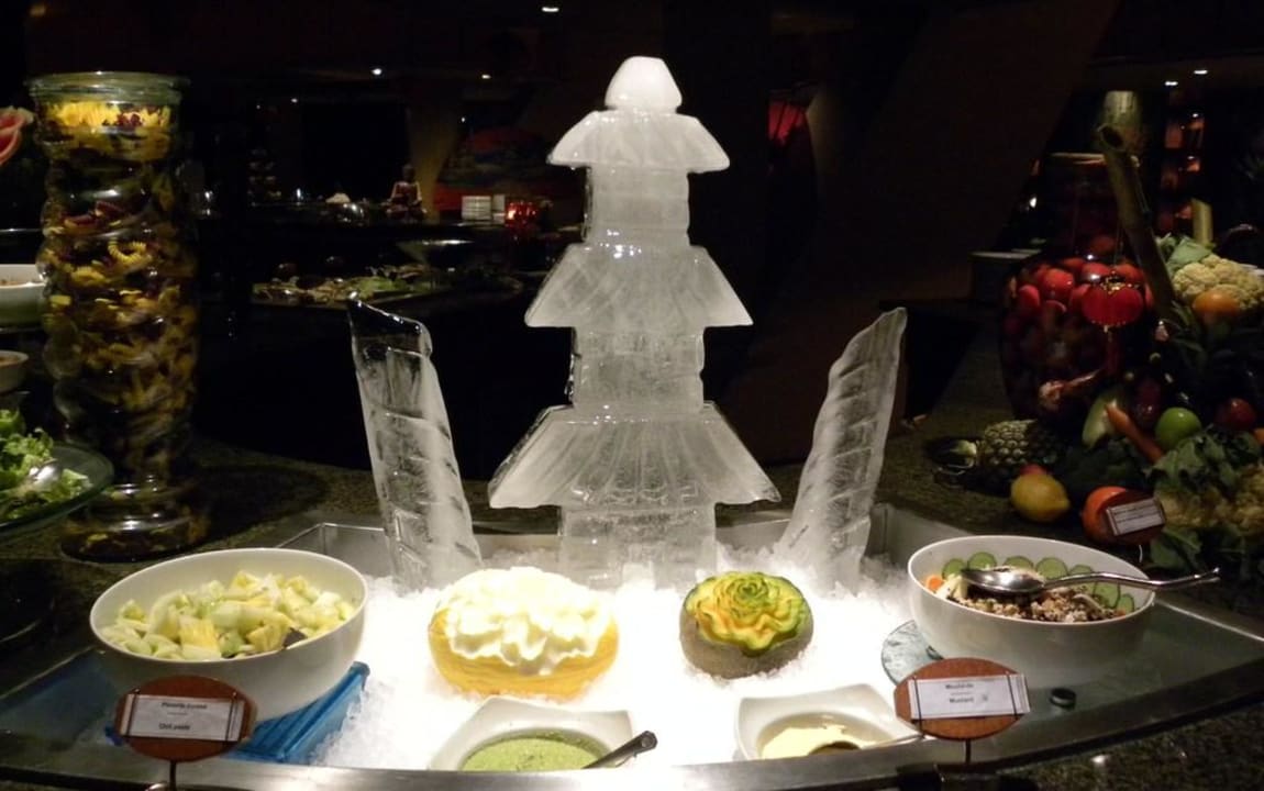Eisskulptur beim Buffet am Abend