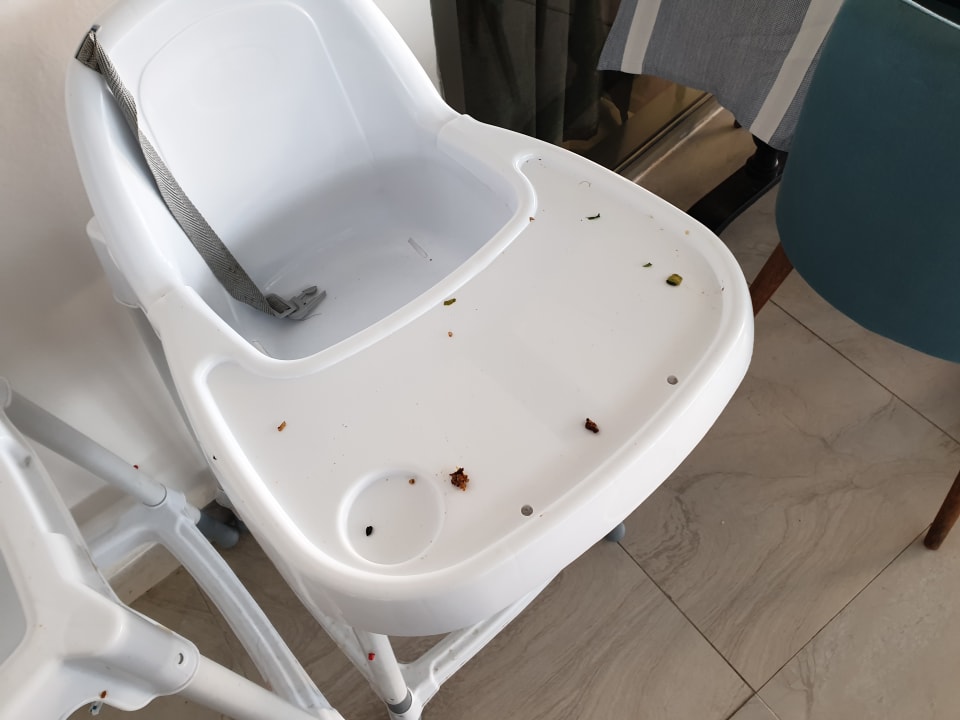 So sahen die Hochstühle vor! dem Essen aus. Widerlich