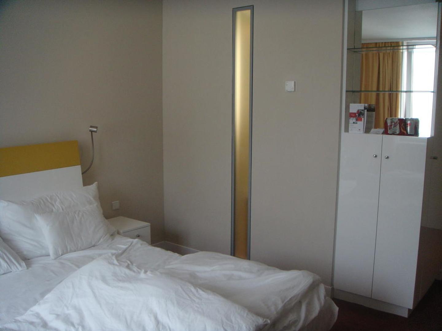 Blick zur Wand, mit Lichtstreifen zum Bad