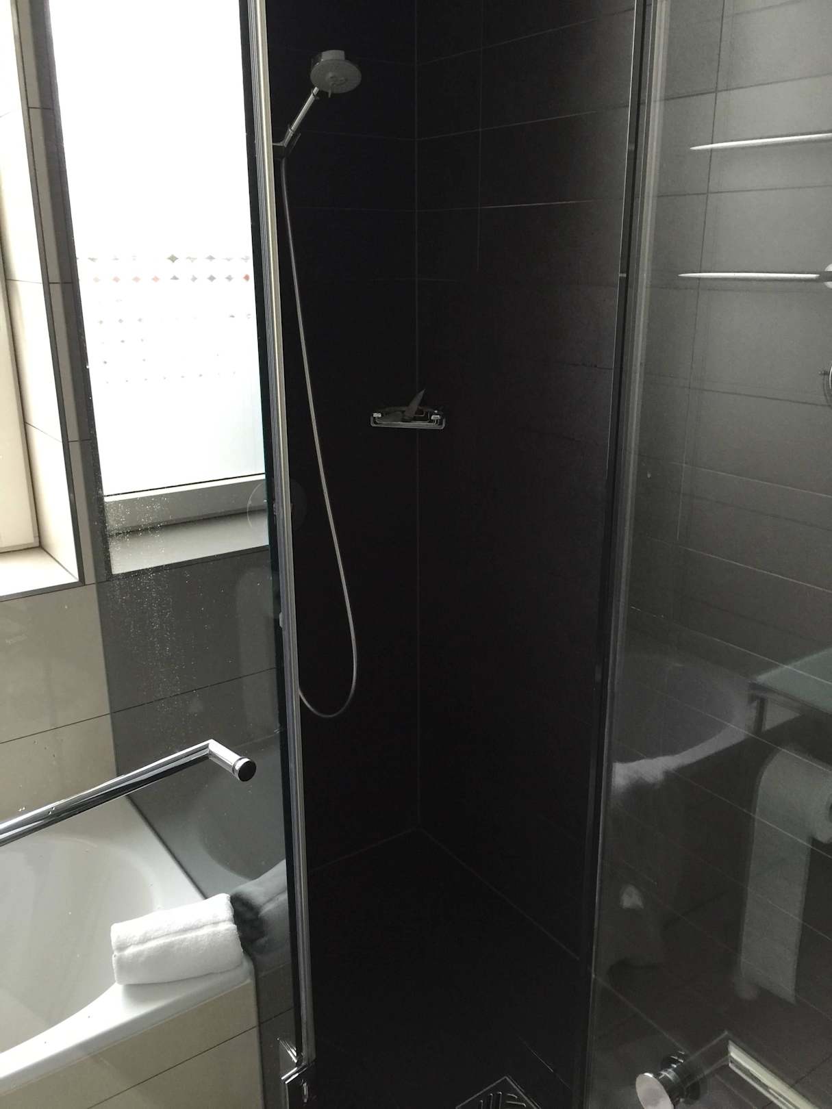 Schönes Badezimmer mit Wanne und Dusche!