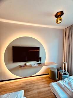 Helle und freundliche Ausstattung; Flachbild TV mit ausreichender Anzahl an Programmen; kostenloser Safe und kostenloser Mini Kühlschrank (auf Wunsch)