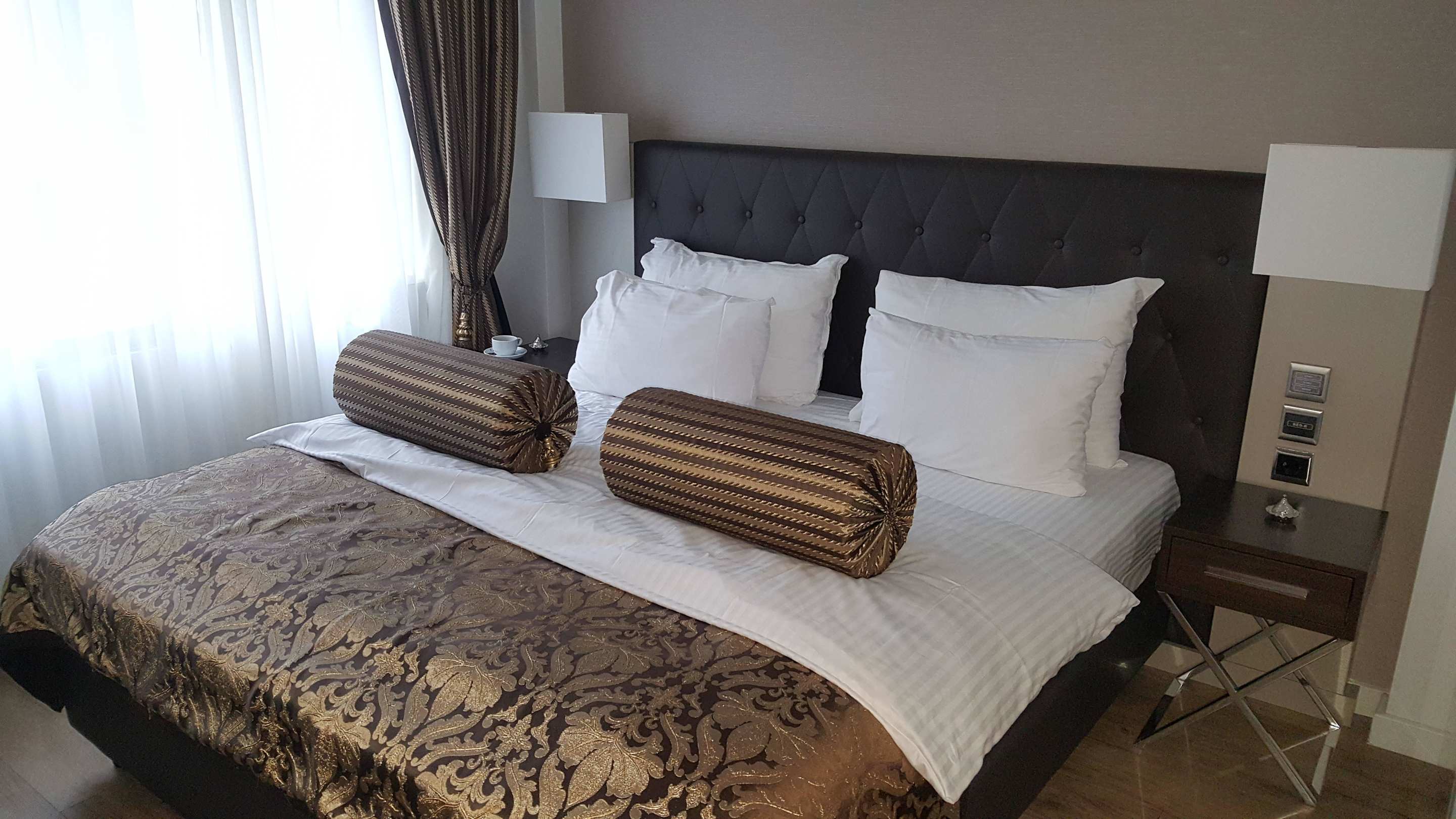 Gemütliches Bett mit vielen Kissen