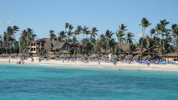 Hotelstrand vom Katamaran gesehen