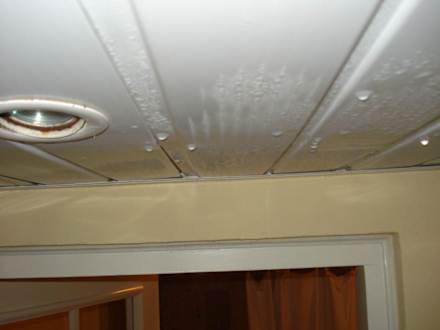 verrostete Klimarohre in der Decke tropften durch die Holzwände ins Zimmer zum Teil sogar durch die Lampen hindurch, was nicht ganz ungefährlich ist
