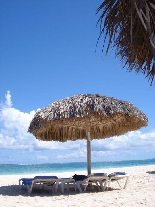 StrandschirnLiegen und Strandschirme gibt es (zumindest zu unserer Zeit in der Nebensaison) zu Genüge