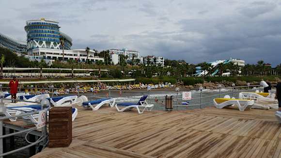 Auch hinter den Rutschen geht der Strand noch ein Stück weiter.