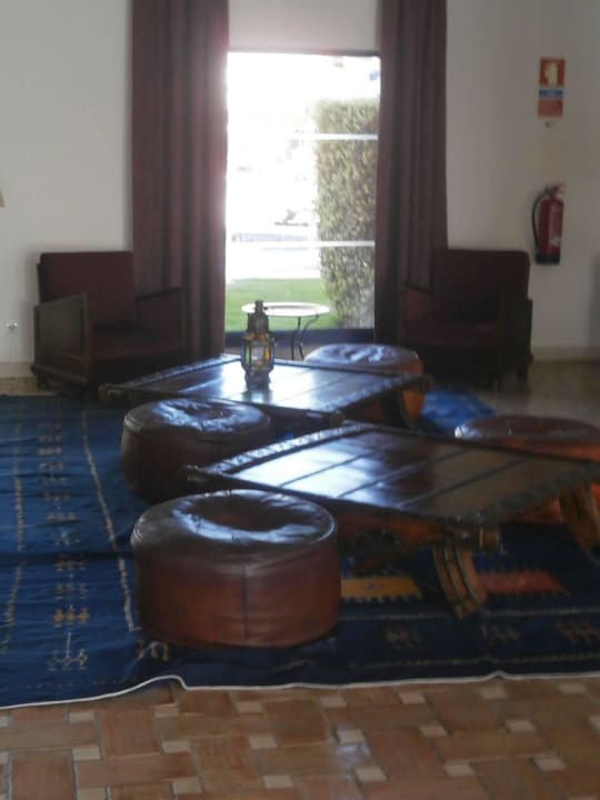 Tische mit Lederhocker in der Lobby