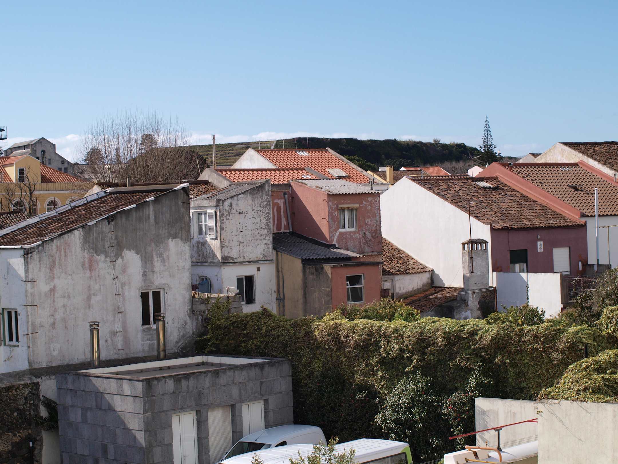 Nachbargebäude und Flughafenrampe oben