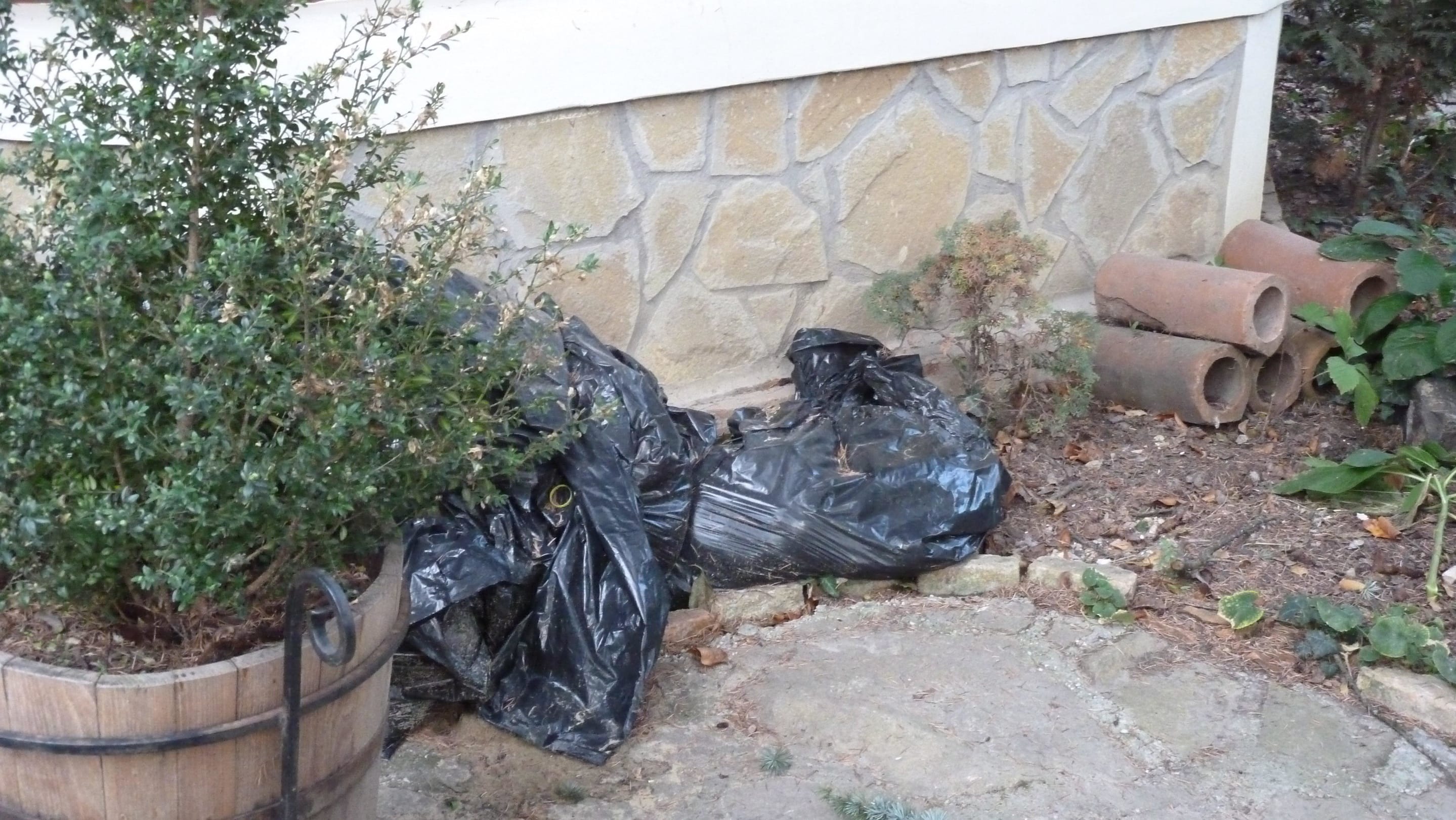 Müllsäcke neben dem Eingang