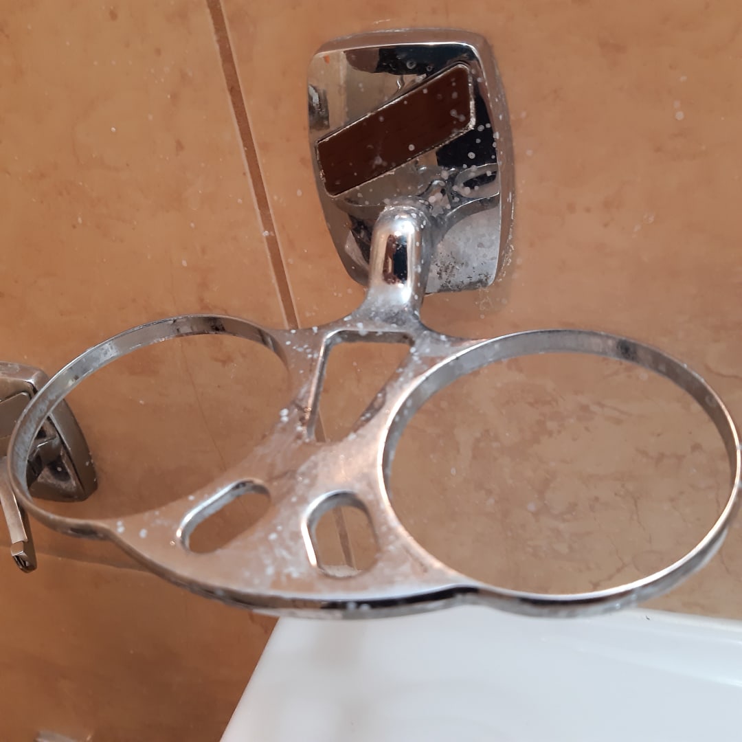 Stark verkeimter Zahnbecherhalter am Anreisetag