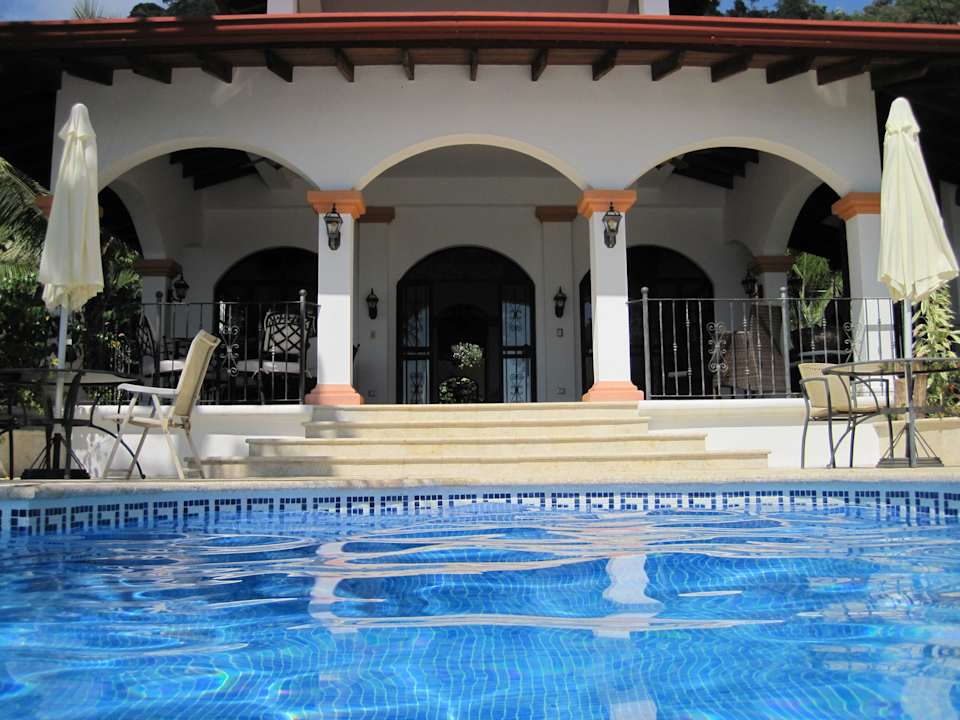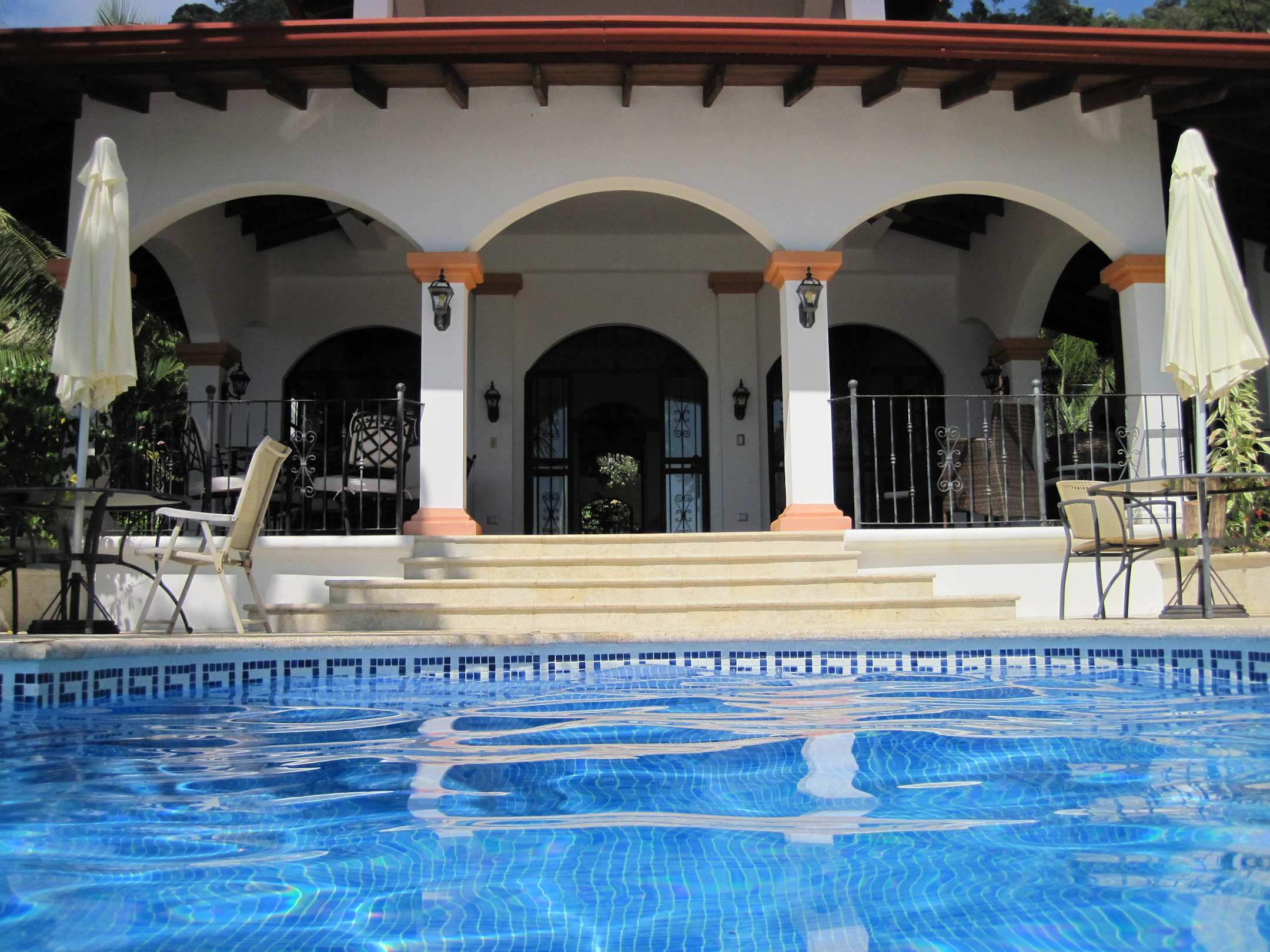 Blick vom Pool zur Terrasse