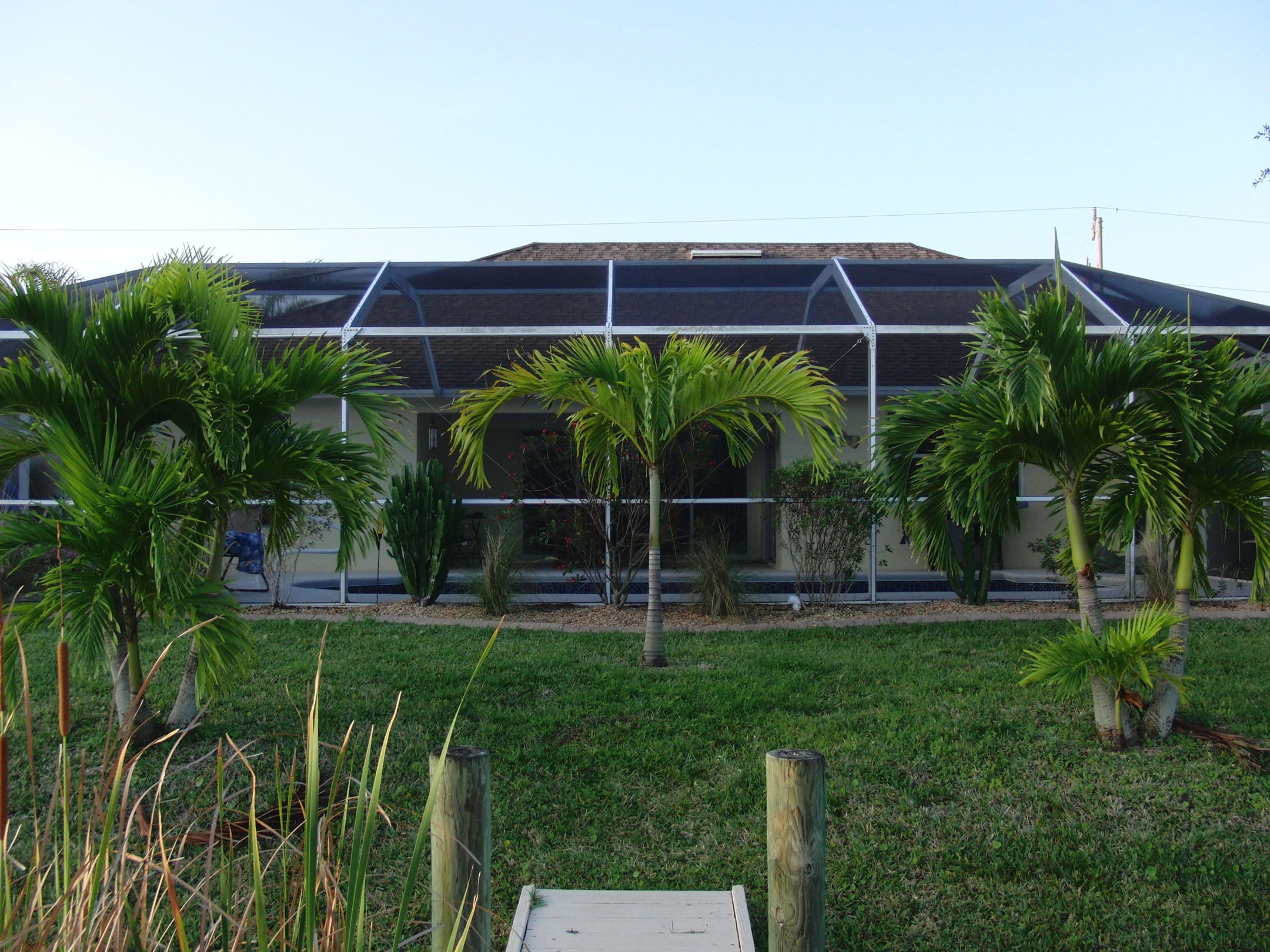 Blick vom eigenen Bootsanleger auf den Poolbereich