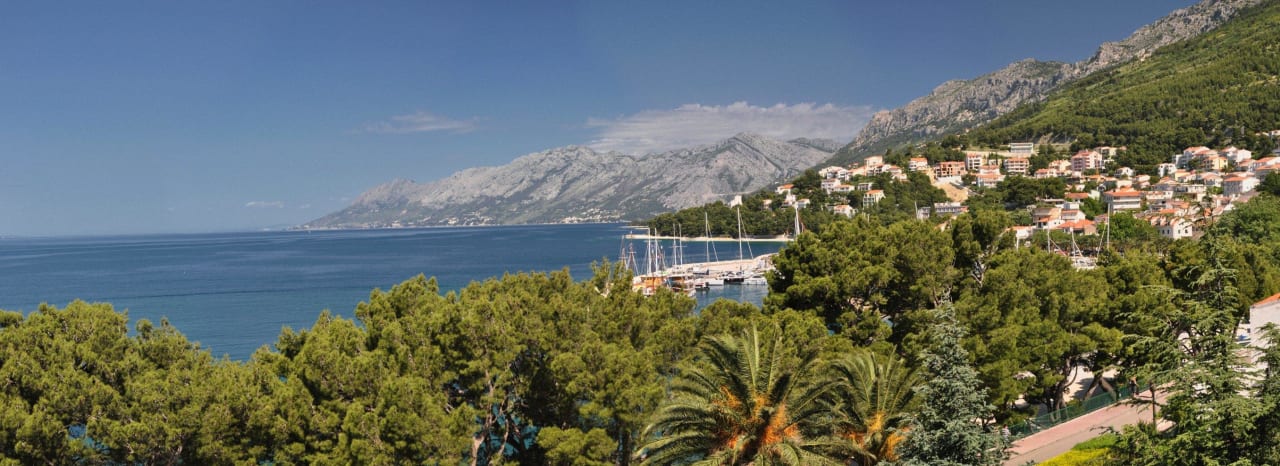 Blick aus Zimmer 305 seitlichBlick von dem kleinen Balkon, für 2 Personen, weiter rechts ist das Biokovo Gebirge zu sehen. In der Mitte der Hafen