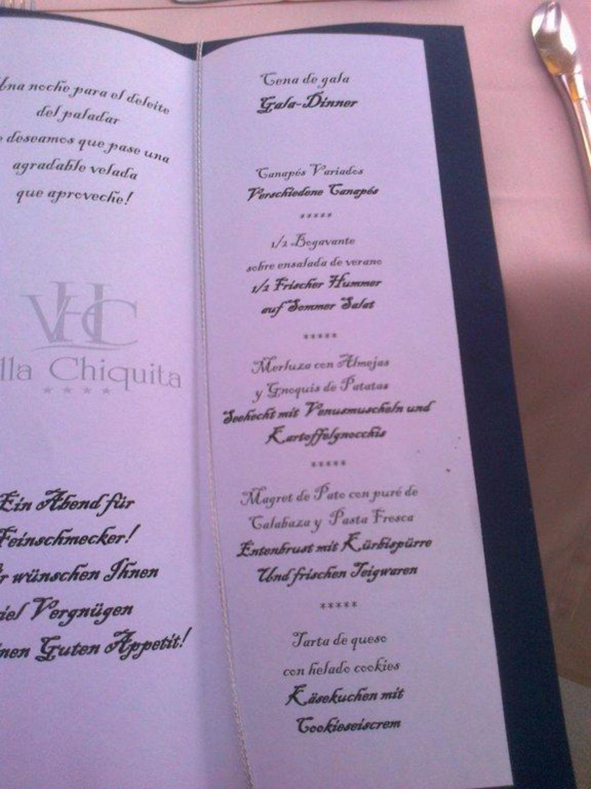 Speisekarte Galadinner