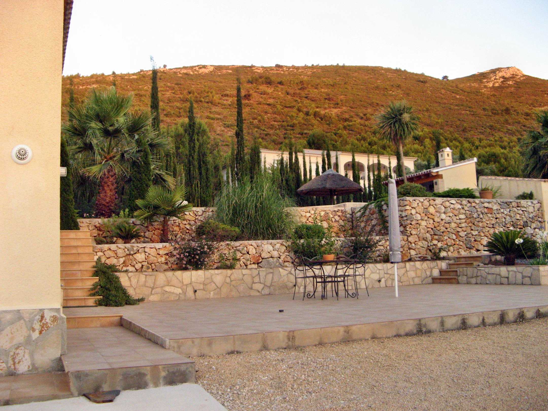 Blick von der unterer Ebene zum versteckten Poolbereich