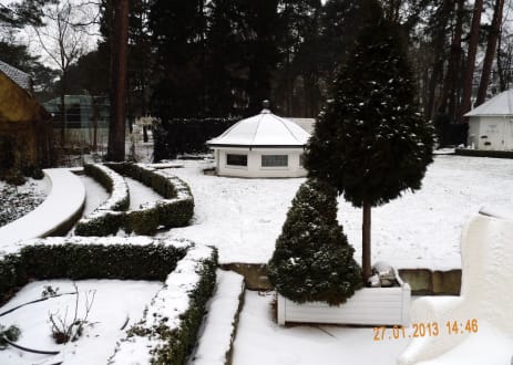 Verschneite Gartenanlage