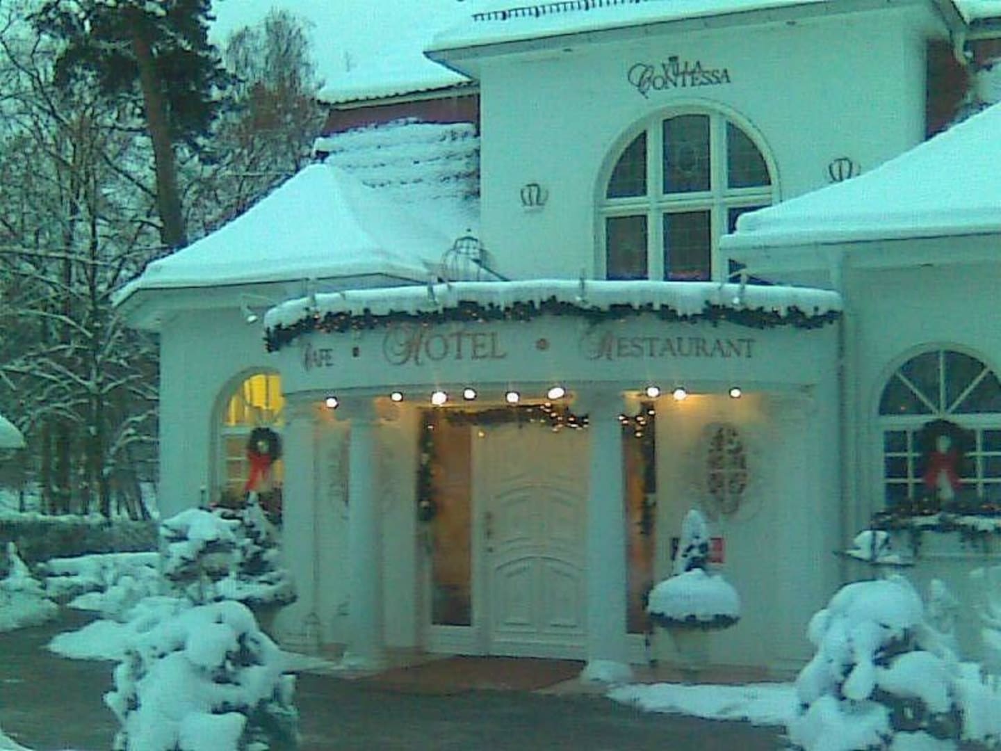 Weihnachtlich einladend Villa ContessaBereits bei Ankunft fühlt man sich sofort zu Hause, wenn man diesen einladenden Eingang des Hotels erblickt. Sogar im Winter eingeschneit, oder gerade deshalb auch, zeigt sich die Villa Contessa als ein kleines Märchenschloss!