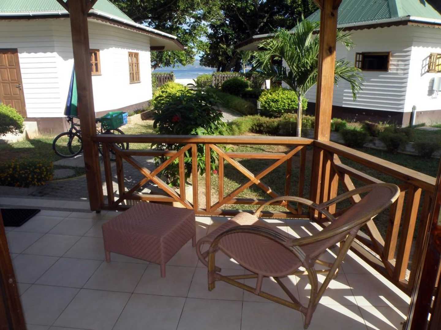 Von der Terrasse konnte man den Strand sehen. Wir hatten Chalet Nr. 4